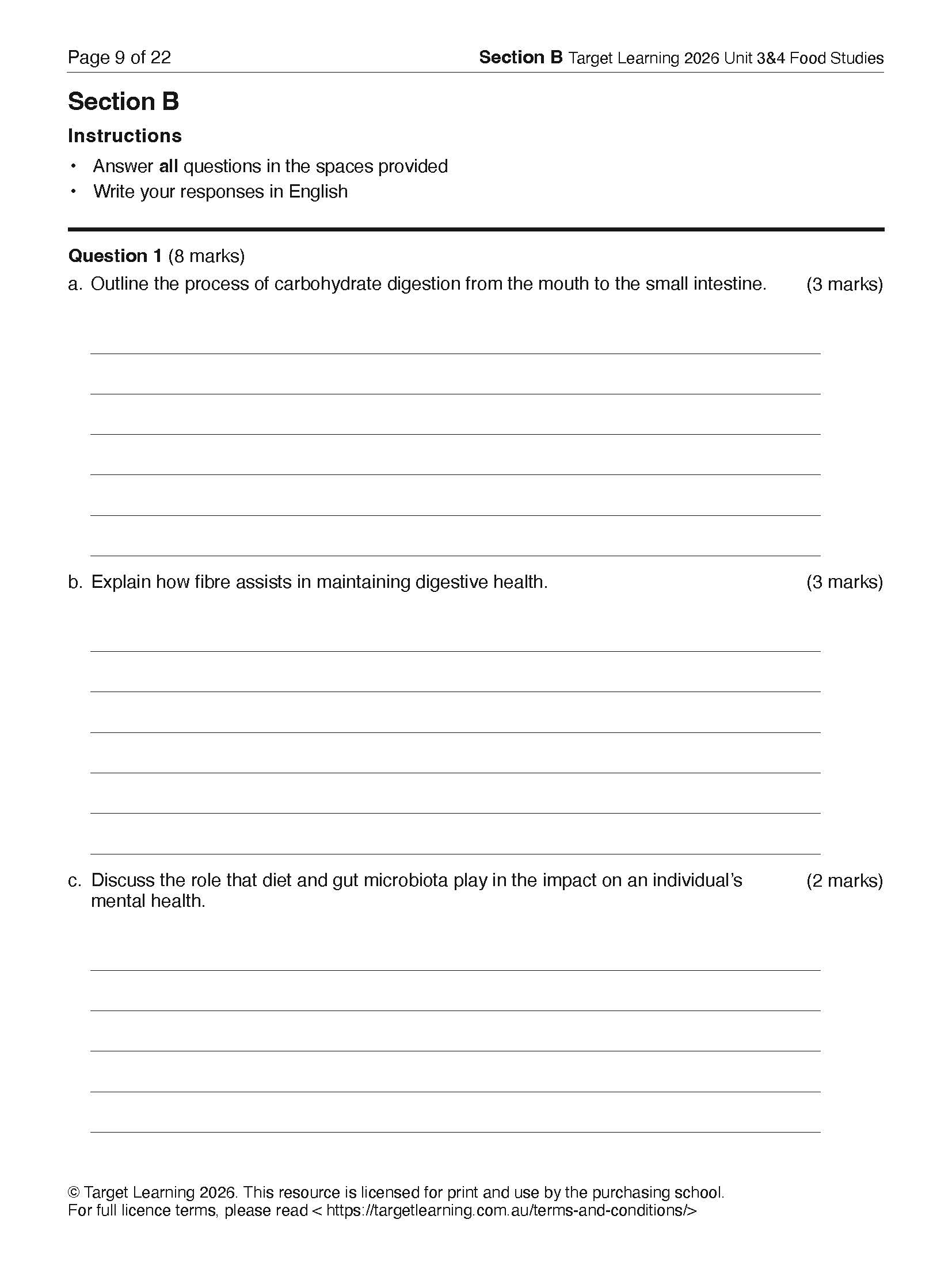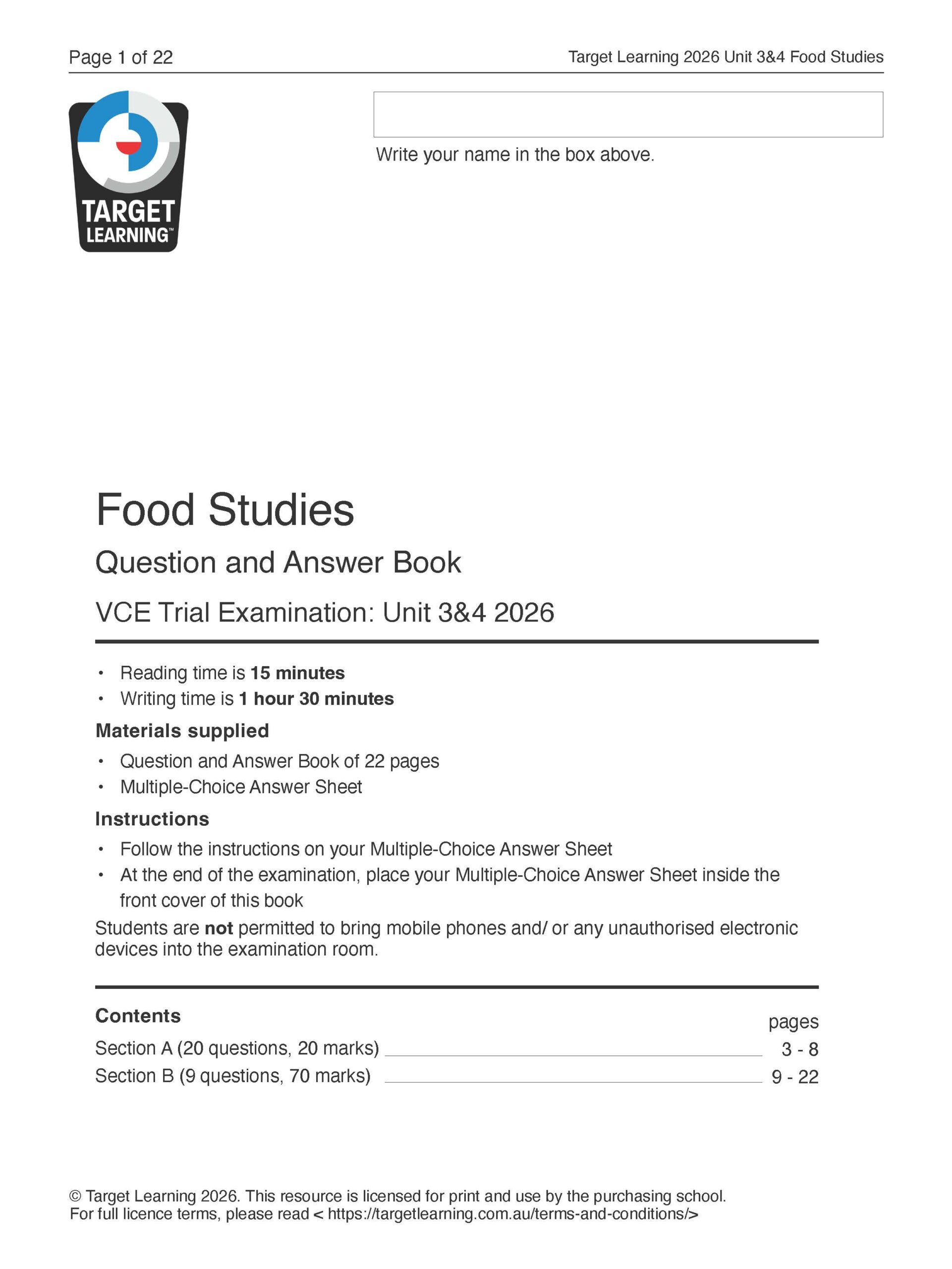 Confident, well-prepared students start with the right resources. The Target Learning 2026 Unit 3&4 Food Studies Trial Examination is modelled on VCAA exams in format, style, marks and question type, and mapped precisely to the Unit 3&4 Key Knowledge and Key Skills, written by experienced, high-performing teachers.